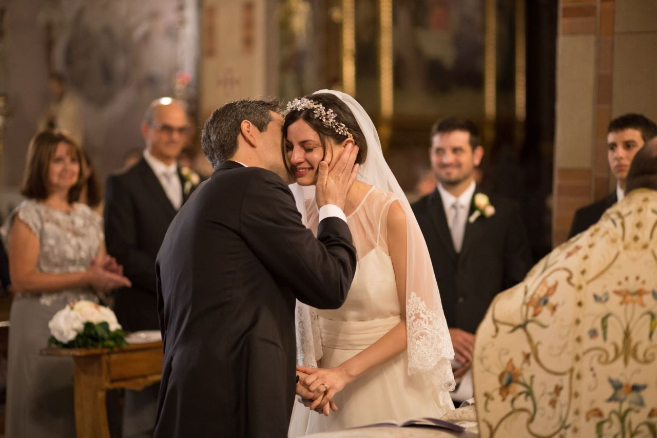 Secondo la tradizione, gli sposi si scambiano gesti d’affetto davanti all’altare: